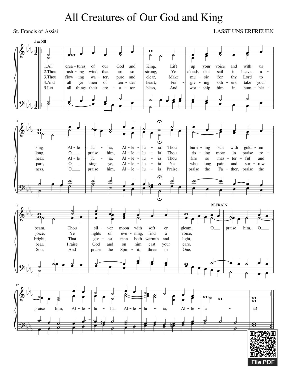 Saint Francis of Assisi All creatures of our God and King Lift up your voice and with us sing [PDF] [Sheet] [Lyrics] [Mp4/Midi]