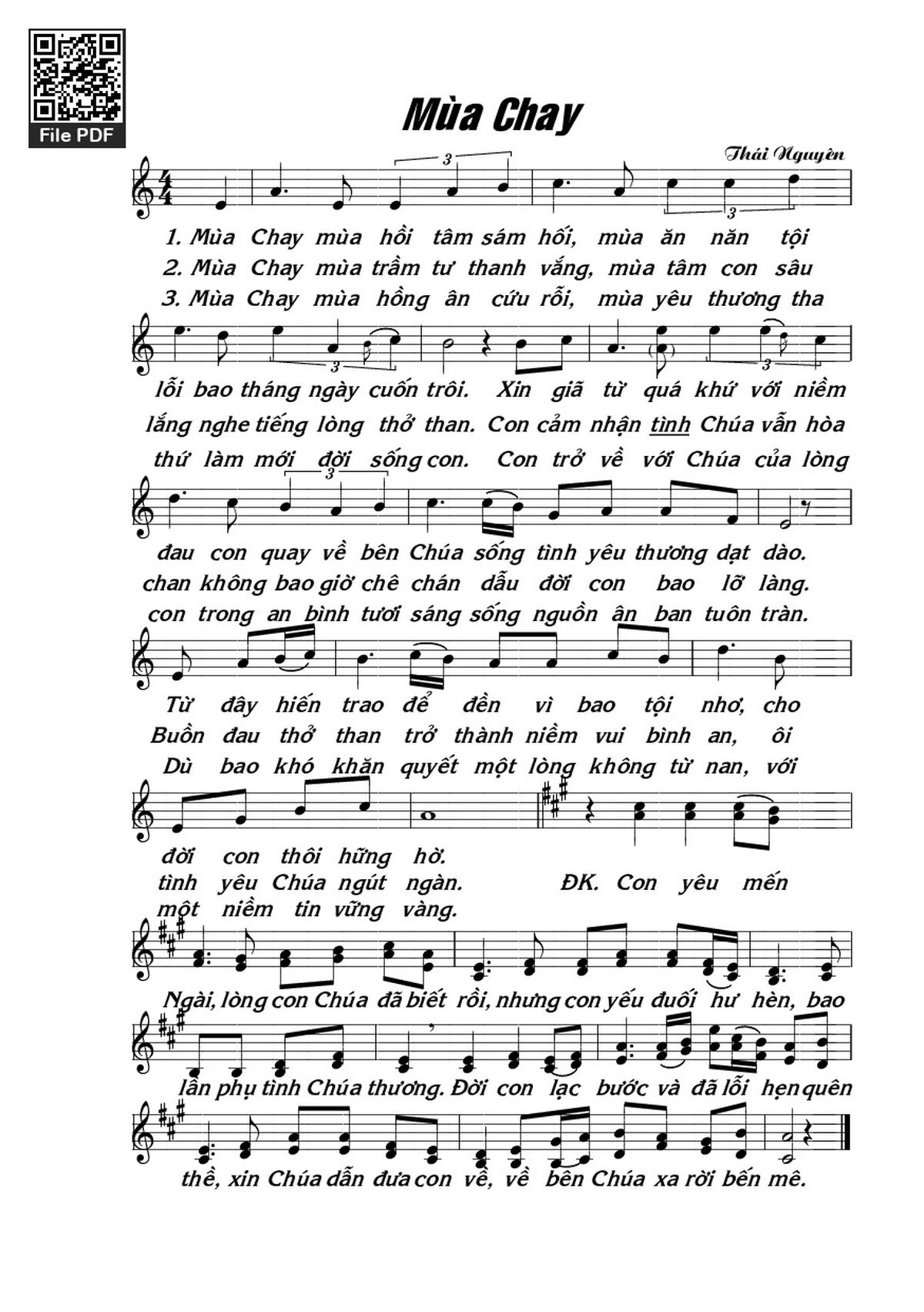 Thái Nguyên Mùa Chay mùa hồi tâm sám hối mùa ăn năn tội lỗi bao tháng ngày cuốn trôi [PDF] [Sheet] [Lyrics] [Mp4/Midi]