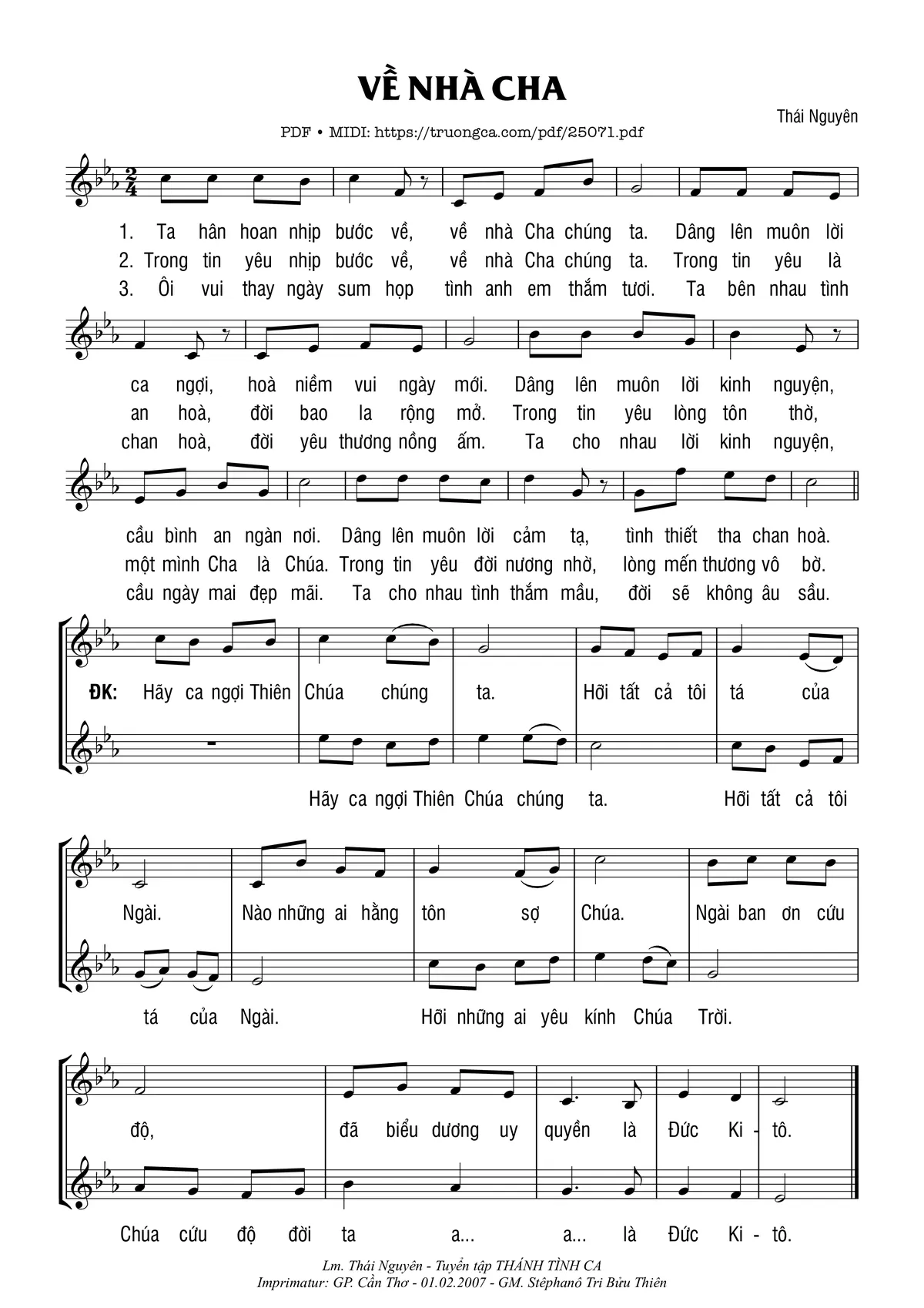Thái Nguyên Ta hân hoan nhịp bước về về nhà Cha chúng ta [PDF] [Sheet] [Lyrics] [Mp4/Midi]