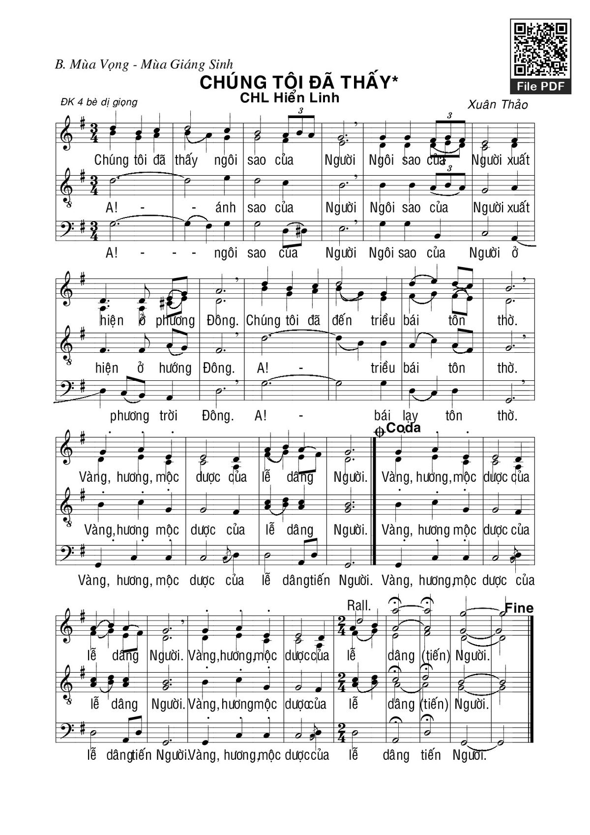 Xuân Thảo Chúng tôi đã thấy ngôi sao của Người ngôi sao của Người xuất hiện ở phương Đông [PDF] [Sheet] [Lyrics] [Mp4/Midi]