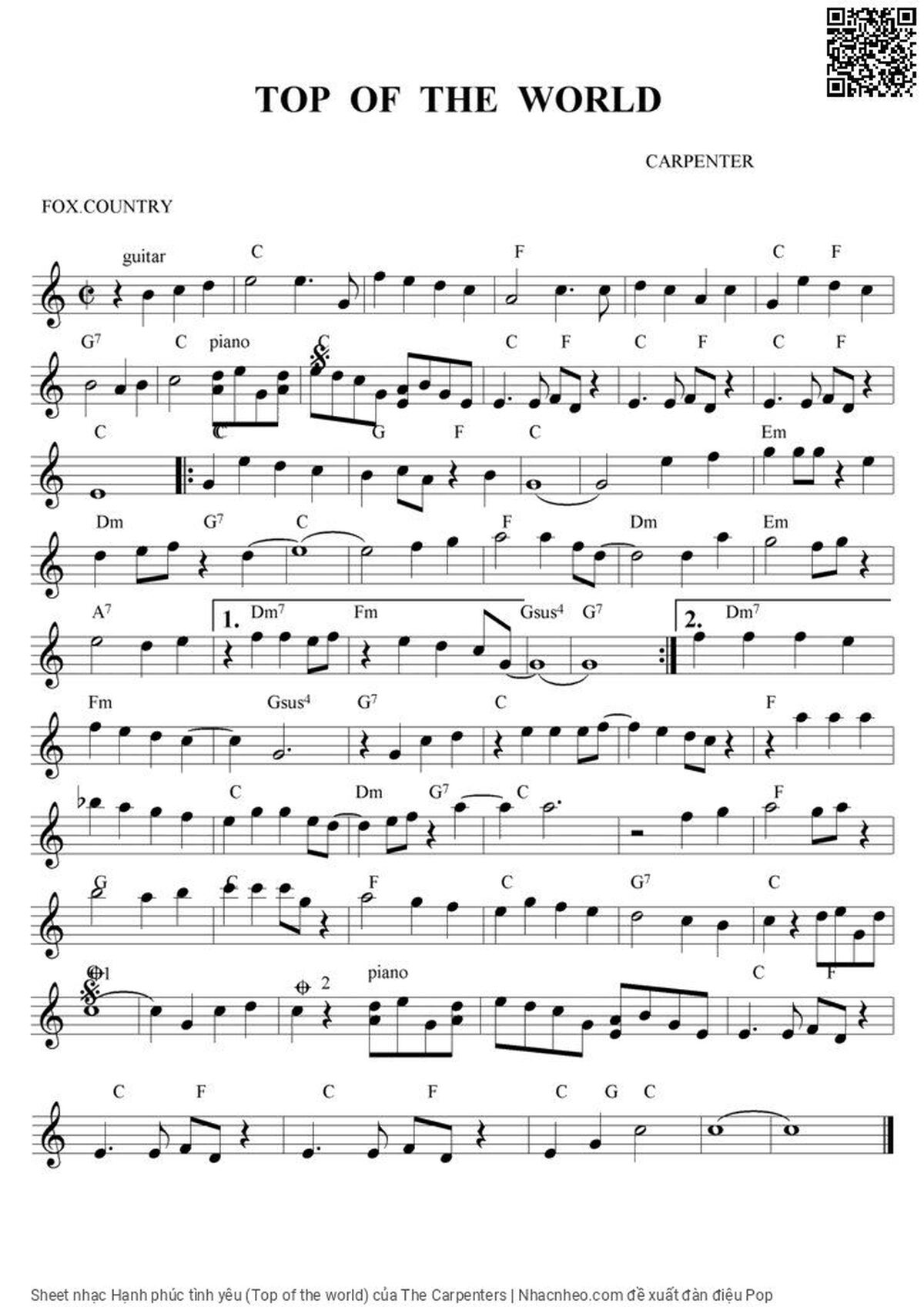 More similar sheets PDF Hạnh phúc tình yêu (Top of the world):