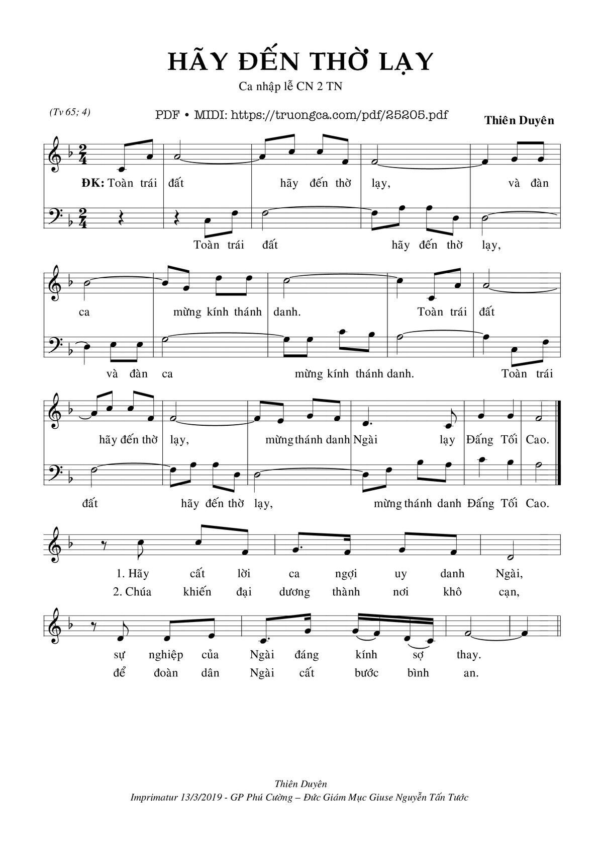 Thiên Duyên Toàn trái đất hãy đến thờ lạy và đàn ca mừng kính thánh danh [PDF] [Sheet] [Lyrics] [Mp4/Midi]