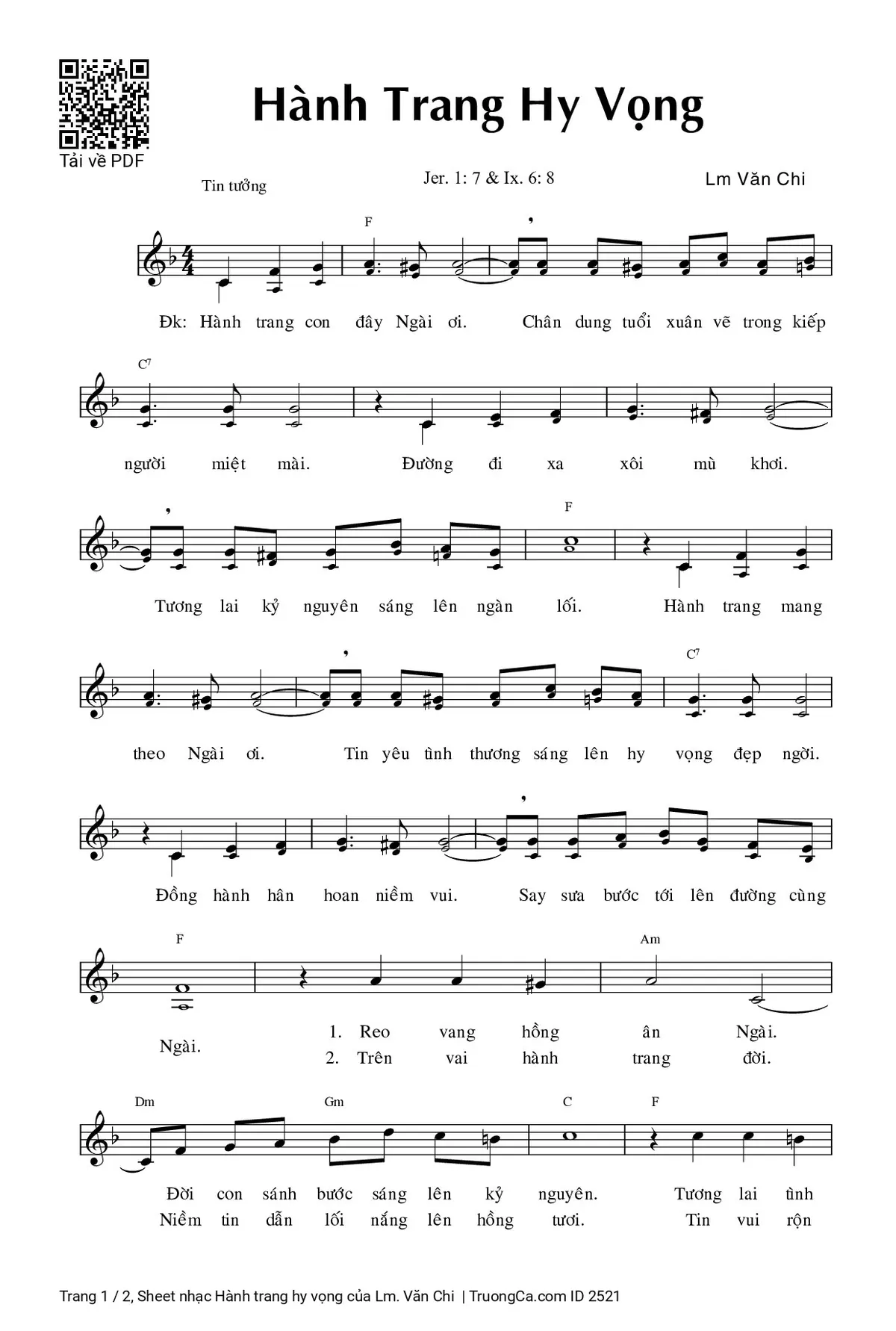Sheet PDF with the same name Hành trang hy vọng: