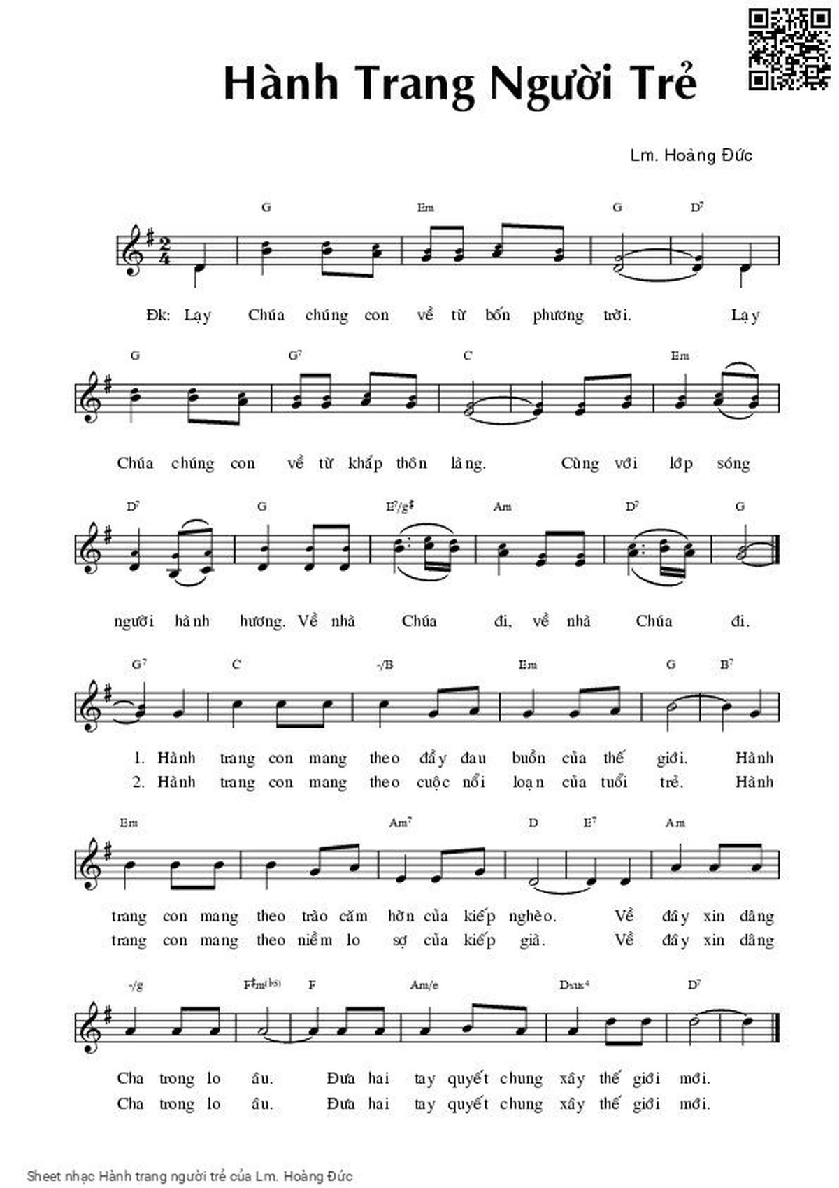 Cùng với lớp sóng [G] người hành [D] hương về nhà Chúa [C] đi, về nhà [D] Chúa [G] đi.