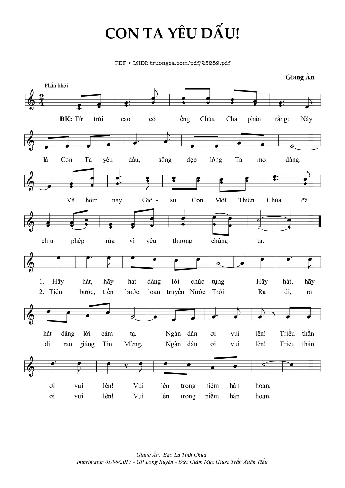 Giang Ân Từ trời cao có tiếng Chúa Cha phán rằng này là Con Ta yêu dấu [PDF] [Sheet] [Lyrics] [Mp4/Midi]