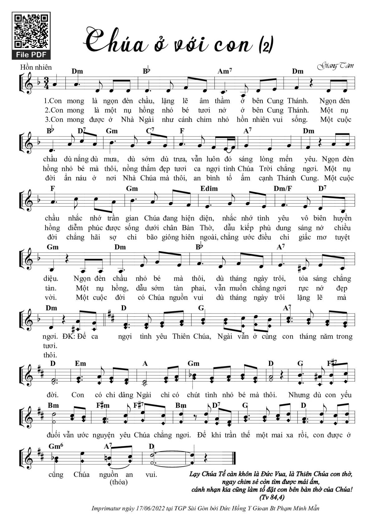 Transposition is the process of moving a song's melody and chords up or down in pitch by a constant interval. The direction of the transposition tool is indicated by a plus (+) sign for up and a minus (-) sign for down. Hover mouse over chords signs to see the chords chart of Chúa Ở Với Con 2 song.