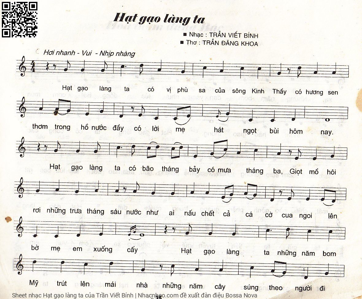 Trần Viết Bính Hạt gạo làng ta Có vị phù sa Của sông Kinh Thầy [PDF] [Sheet] [Lyrics] [Mp4/Midi]