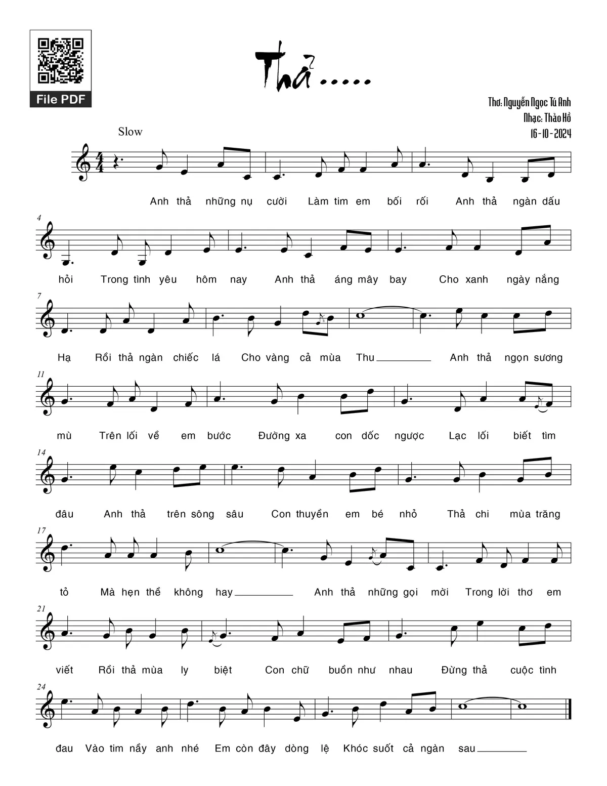 Thảo Hồ Anh thả những nụ cười làm tim em bối rối [PDF] [Sheet] [Lyrics] [Mp4/Midi]