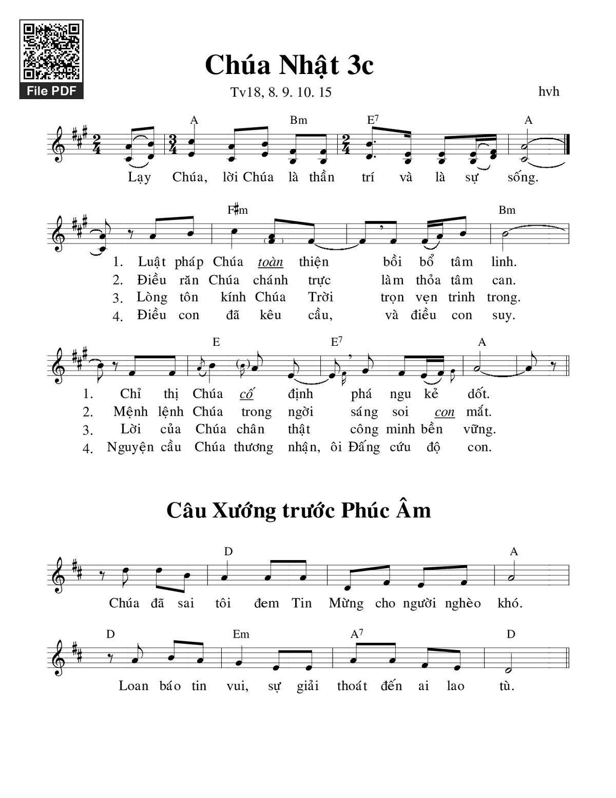 Sheet PDF with the same name Thánh Vịnh 18, Chúa Nhật 3C Thường Niên: