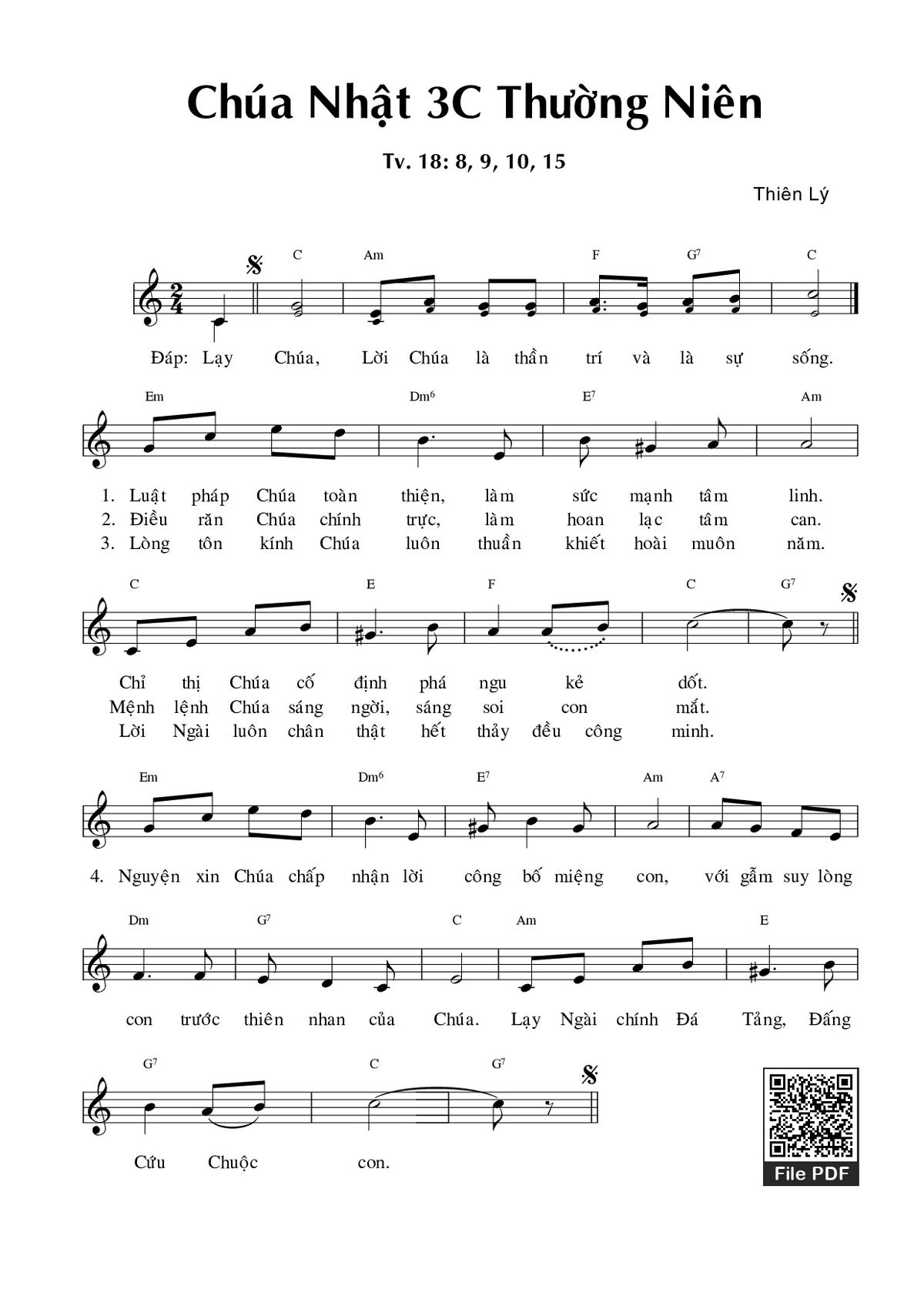 Sheet PDF with the same name Thánh Vịnh 18, Chúa Nhật 3C Thường Niên: