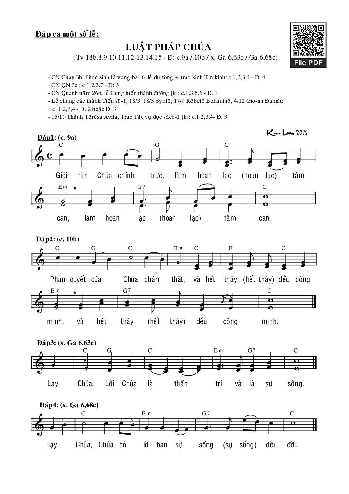 Sheet PDF with the same name Thánh Vịnh 18, Chúa Nhật 3C Thường Niên: