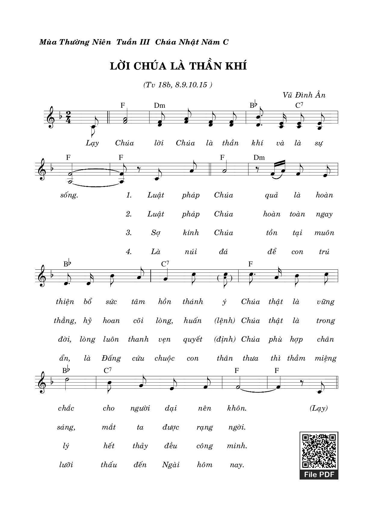 Vũ Đình Ân Chúa Nhật C Thường Niên Lạy Chúa lời Chúa là thần khí và là sự sống [PDF] [Sheet] [Lyrics] [Mp4/Midi]