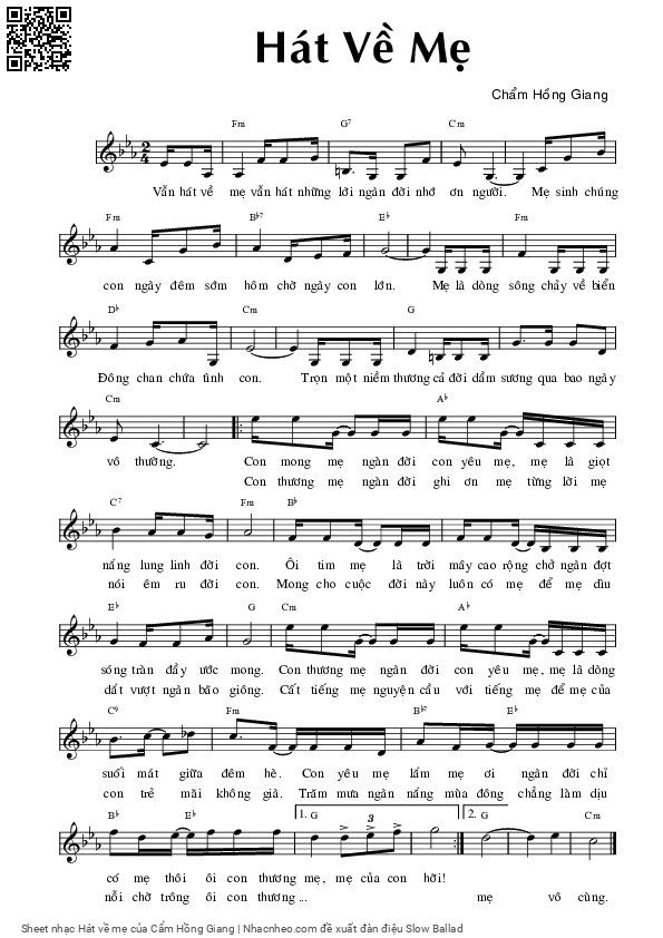 Cẩm Hồng Giang Vẫn hát về mẹ vẫn hát những lời ngàn đời nhớ ơn người [PDF] [Sheet] [Lyrics] [Mp4/Midi]