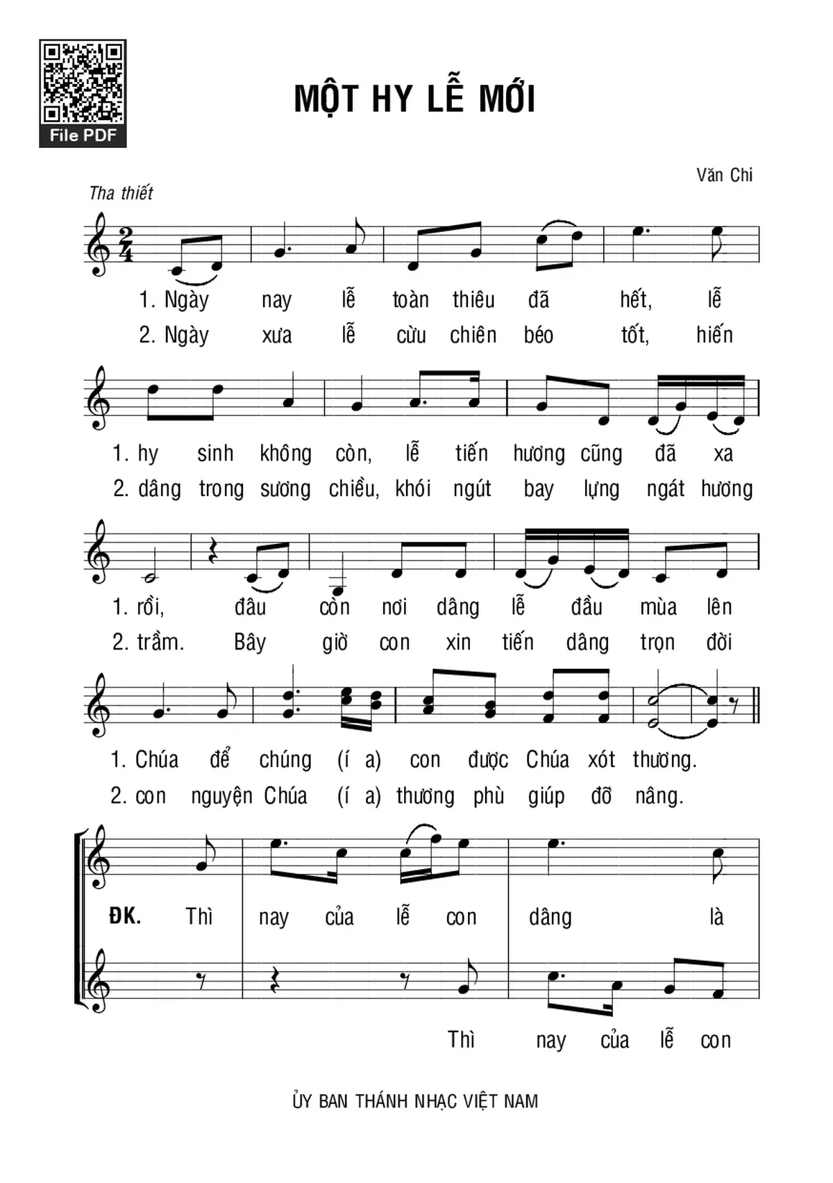 2/ Ngày xưa lễ cừu chiên béo tốt, hiến dâng trong sương chiều, khói ngát bay lựng ngát hương trầm. Bây giờ con xin tiến dâng trọn đời con nguyện Chúa thương phù giúp đỡ nâng.