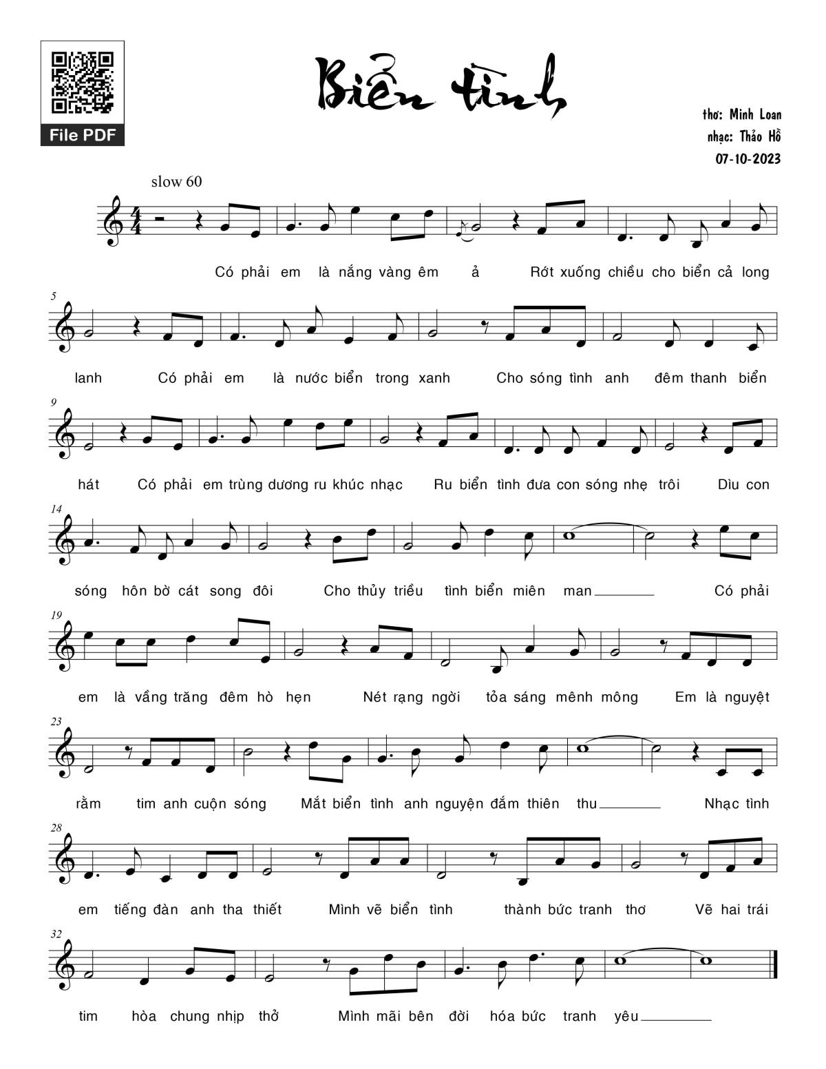 Thảo Hồ Có phải em là nắng vàng êm ả Rót xuống chiều cho biển cả long lanh [PDF] [Sheet] [Lyrics] [Mp4/Midi]