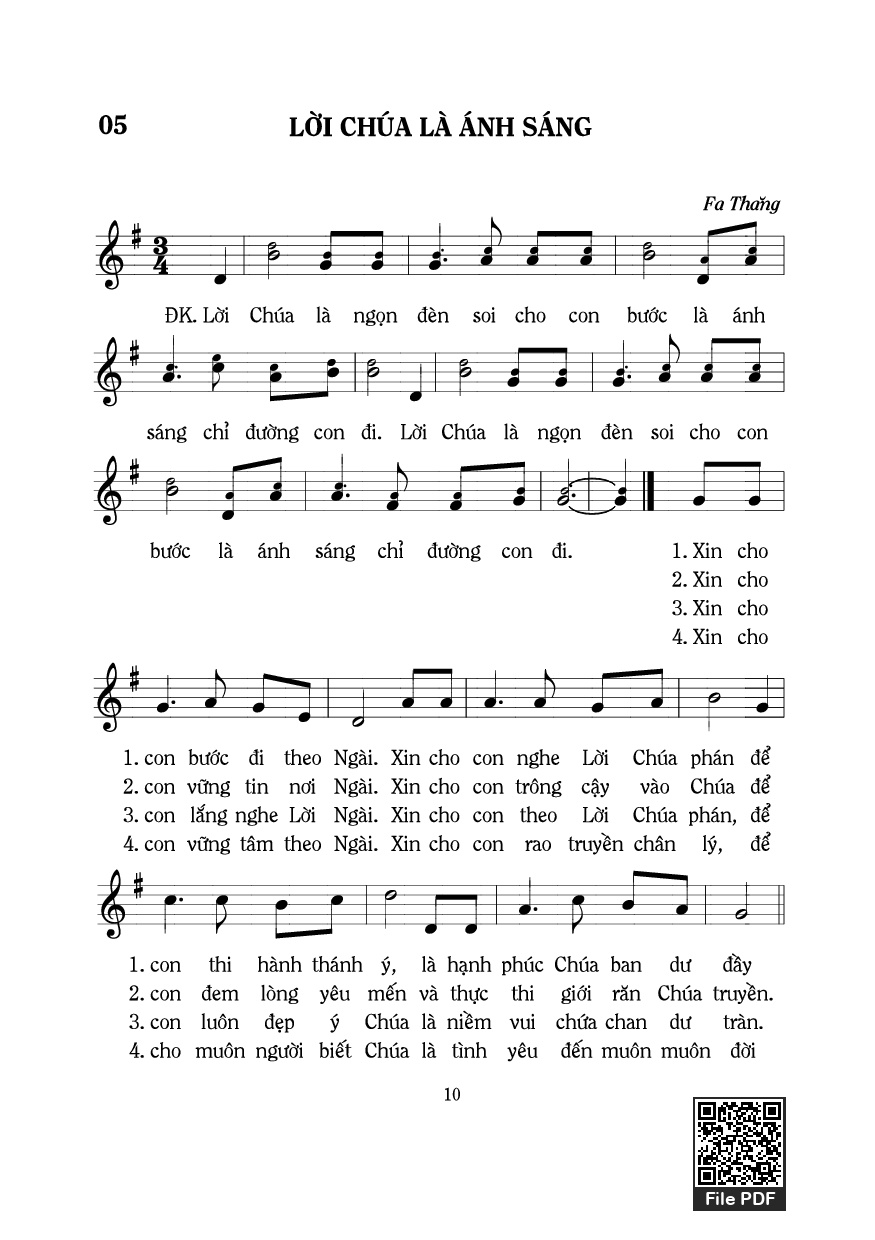 Fa Thăng Lời Chúa là ngọn đèn soi cho con bước là ánh sáng chỉ đường con đi [PDF] [Sheet] [Lyrics] [Mp4/Midi]