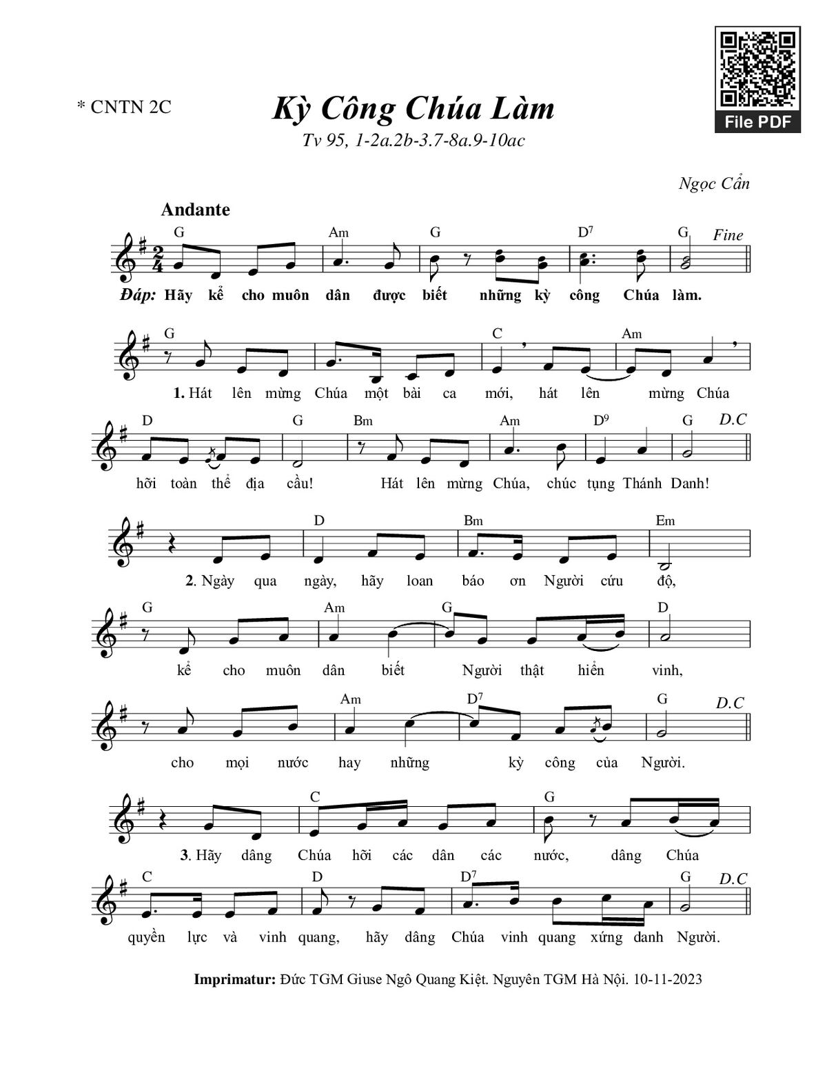 Ngọc Cẩn Hãy kể cho muôn dân được biết những kỳ công Chúa làm [PDF] [Sheet] [Lyrics] [Mp4/Midi]