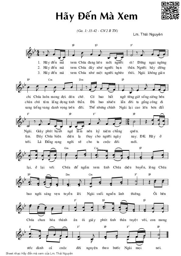 Lm. Thái Nguyên Hãy đến mà xem Chúa đang kêu mời người ơi [PDF] [Sheet] [Lyrics] [Mp4/Midi]