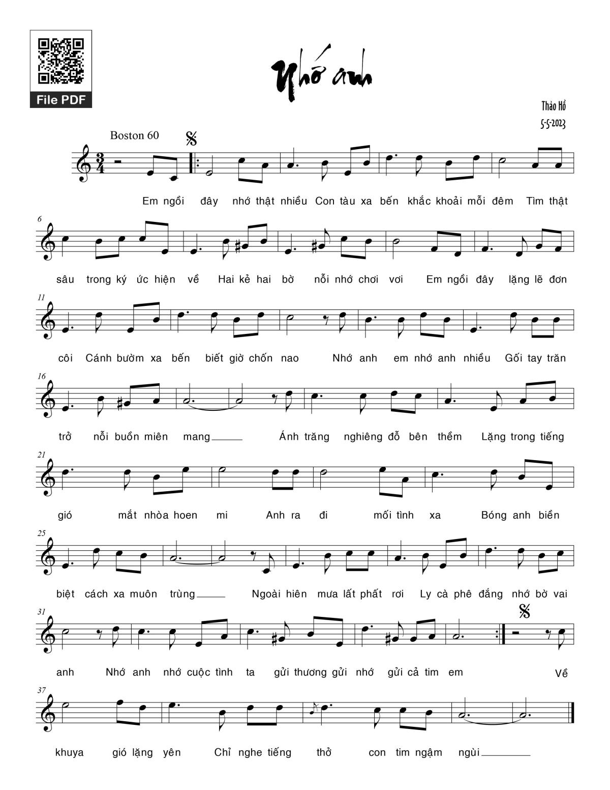 Sheet PDF with the same name Nhớ anh: