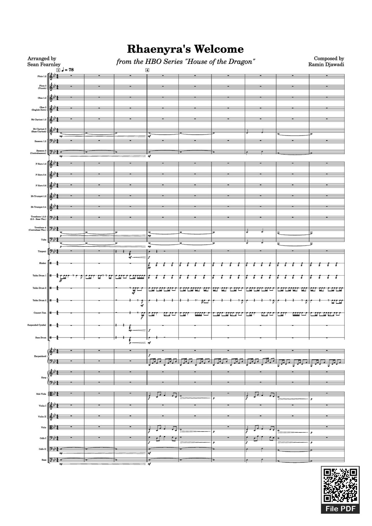 Download and print in PDF or MIDI free sheet music for Rhaenyra's Welcome - House of the Dragon arranged by Sean Fearnley for Trombone, Harpsichord, Tuba, Flute piccolo & more instruments (Symphony Orchestra)