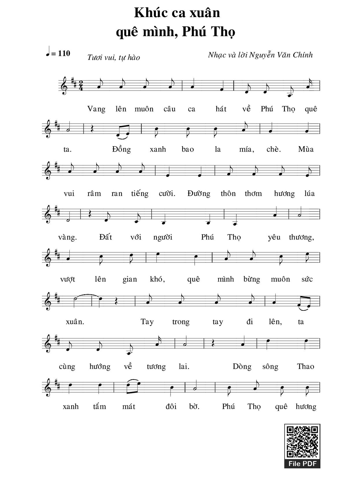 Nguyễn Văn Chính Vang lên muôn câu ca hát về Phú Thọ quê ta [PDF] [Sheet] [Lyrics] [Mp4/Midi]