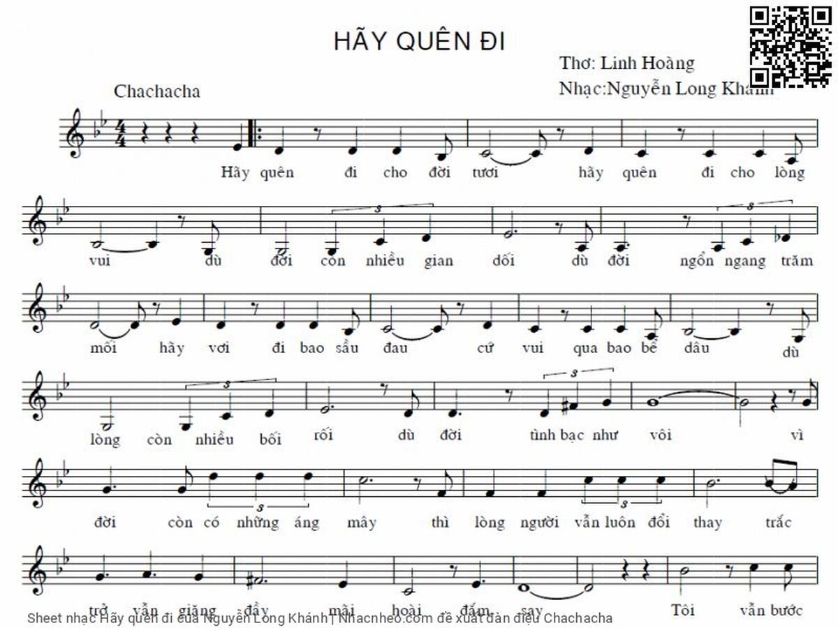 Transposition is the process of moving a song's melody and chords up or down in pitch by a constant interval. The direction of the transposition tool is indicated by a plus (+) sign for up and a minus (-) sign for down. Hover mouse over chords signs to see the chords chart of Hãy quên đi song.