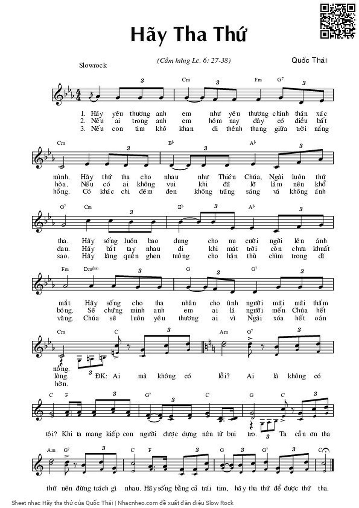 Quốc Thái Hãy yêu thương anh em như yêu thương chính thân xác mình [PDF] [Sheet] [Lyrics] [Mp4/Midi]