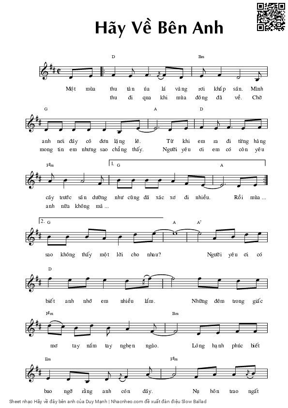 Duy Mạnh Một mùa thu tàn úa lá vàng rơi khắp sân [PDF] [Sheet] [Lyrics] [Mp4/Midi]