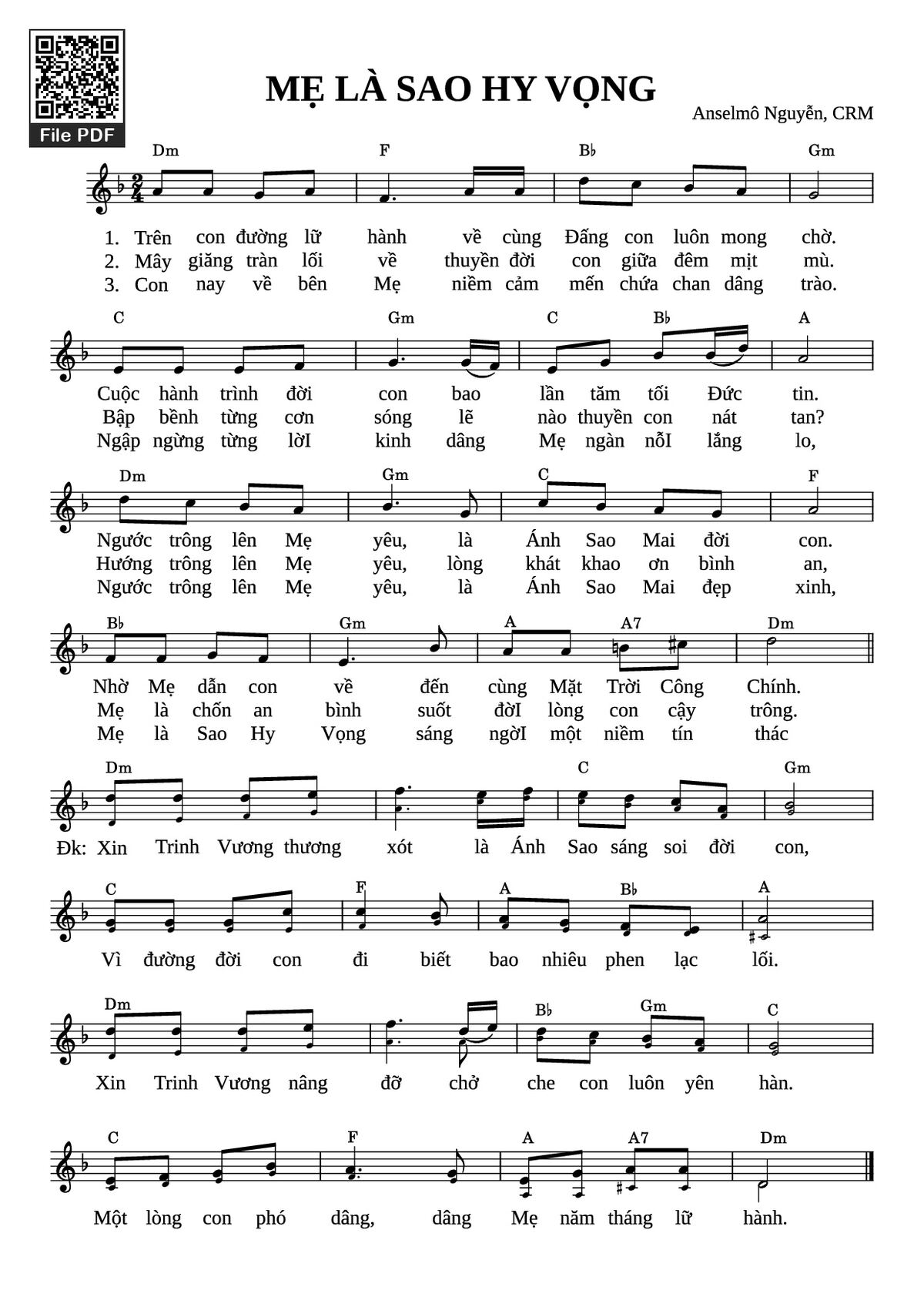 Sheet PDF with the same name MẸ LÀ SAO HY VỌNG: