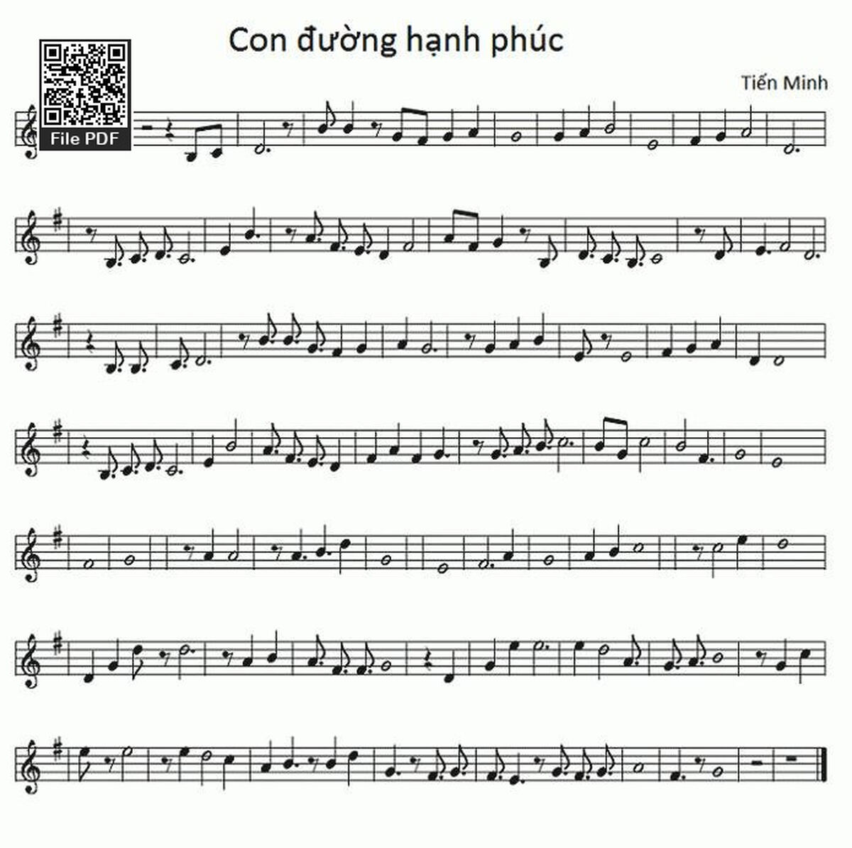 Sheet music Con Đường Hạnh Phúc by Tiến Minh and PDF file was posted here to support you to practice singing perfectly. Sheets with notes and chords are for reference only, for non-commercial purposes only, not involved with earning money by buying and selling. Copyright is belong to song writer/author and copyright owner. Truongca.com do not own any copyrighted content. You can download the high-quality PDF files which contain staffs by PDF link above.