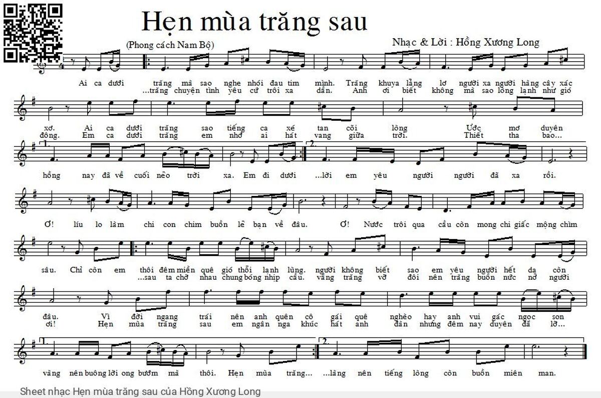 Hồng Xương Long Ai ca dưới trăng mà sao nghe nhói đau tim mình [PDF] [Sheet] [Lyrics] [Mp4/Midi]