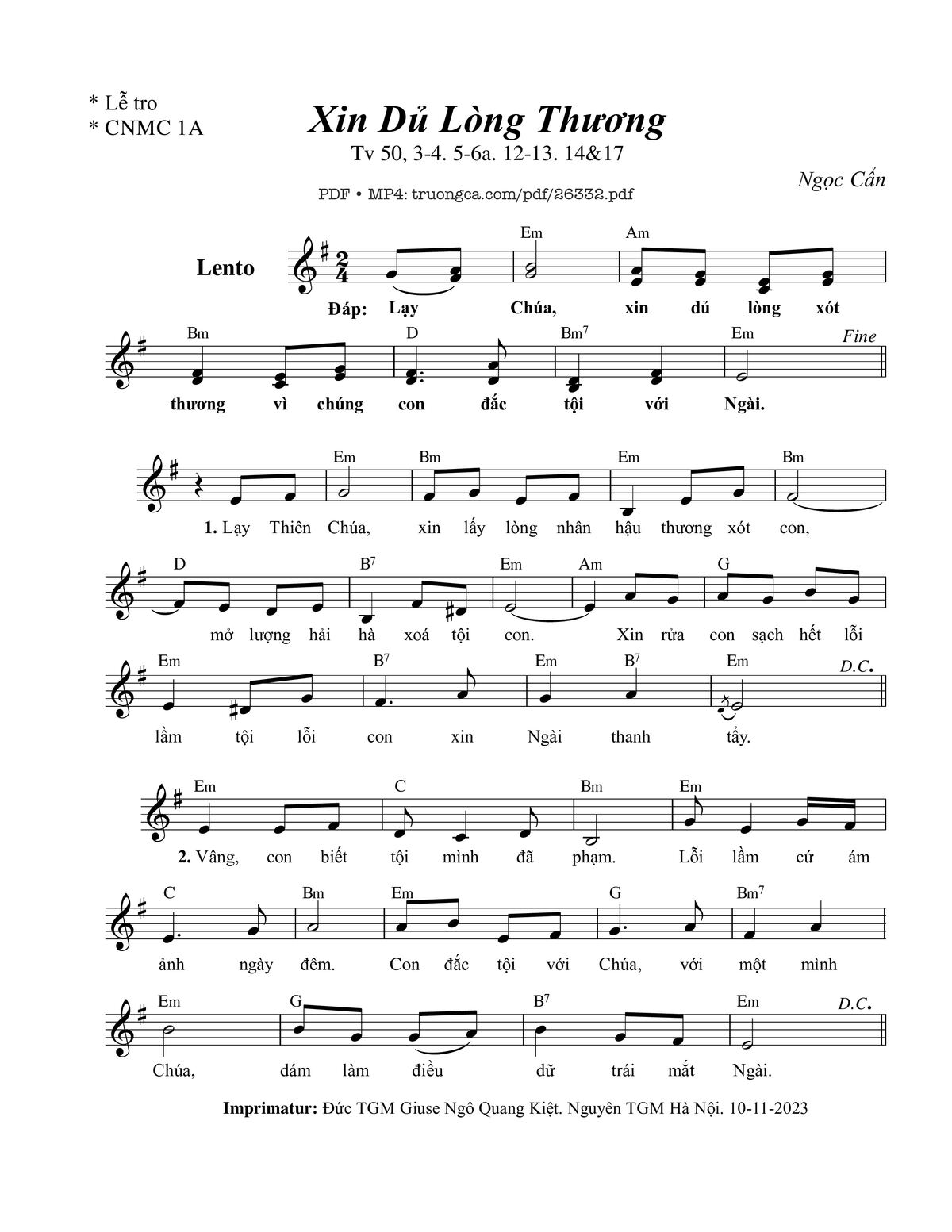 More similar sheets PDF Thánh Vịnh 50, Xin Dủ Lòng Thương: