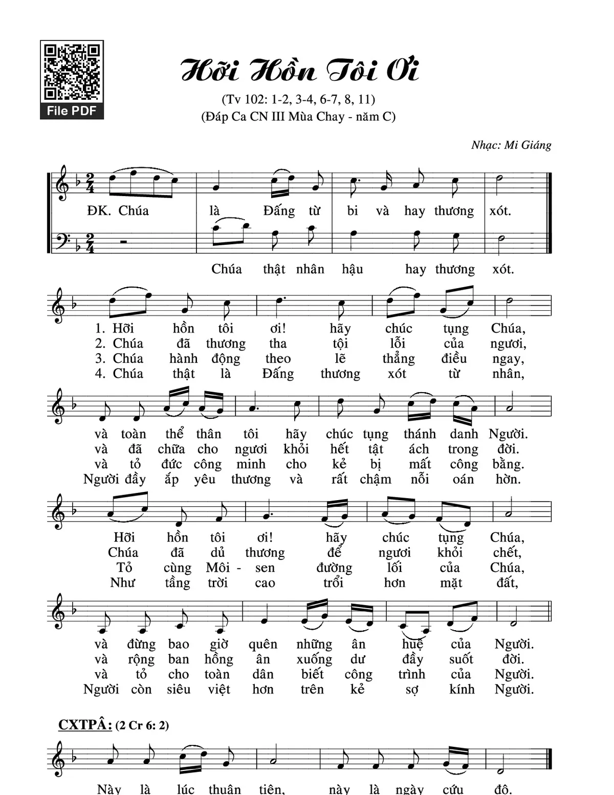 Mi Giáng Chúa là Đấng từ bi và hay thương xót Hỡi hồn tôi ơi [PDF] [Sheet] [Lyrics] [Mp4/Midi]