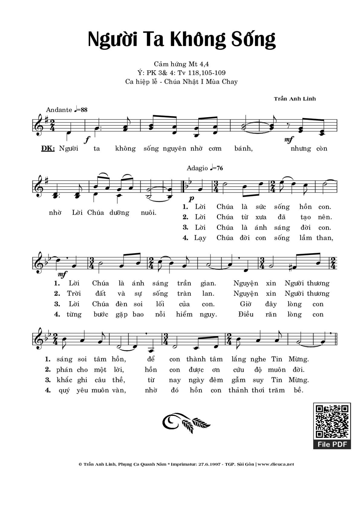 Trần Anh Linh Người ta không sống nguyên nhờ cơm bánh, nhưng còn nhờ Lời Chúa dưỡng nuôi [PDF] [Sheet] [Lyrics] [Mp4/Midi]