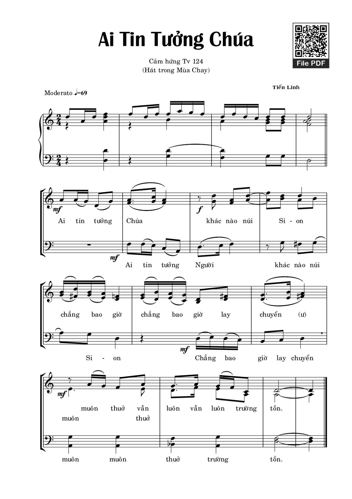 Tiến Linh Ai tin tưởng Chúa khác nào núi Sion chẳng bao giờ chẳng bao giờ lay chuyển [PDF] [Sheet] [Lyrics] [Mp4/Midi]