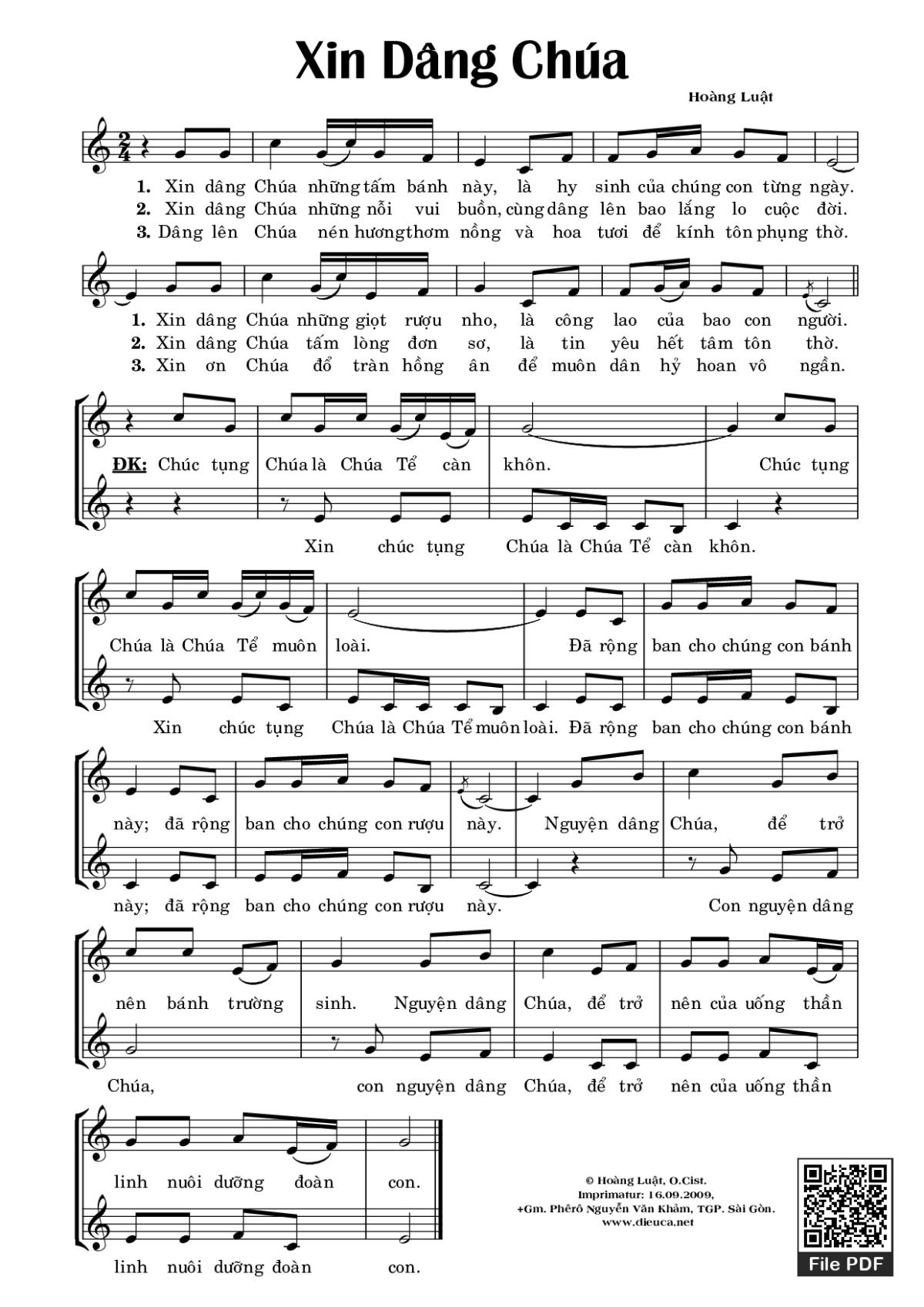 Sheet PDF with the same name Xin Dâng Chúa: