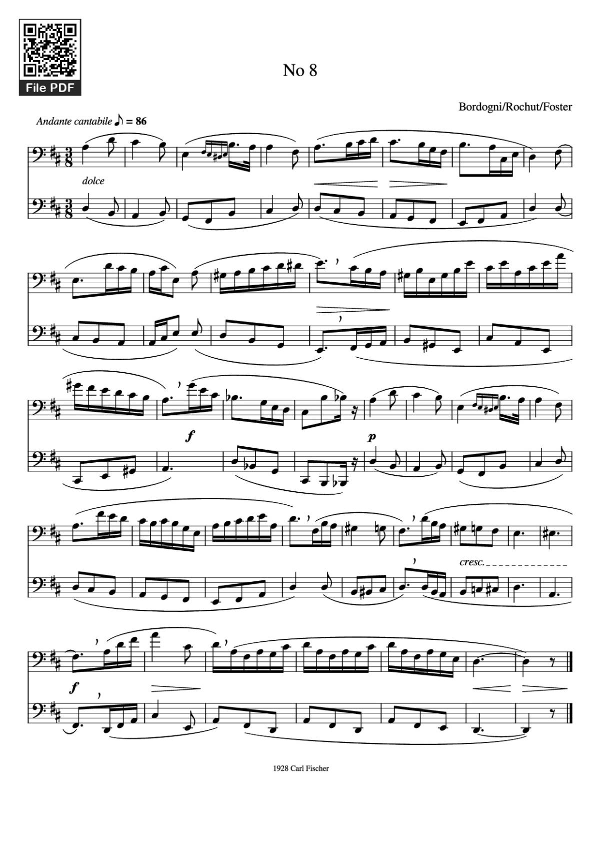 The Videos/audios No 8 by Bordogni/Rochut/Foster were embed from Youtube, Musescore or the other 3rd links. Videos are subject to 3rd's copyright control and may be removed by YouTube's copyright rules and 3rd's policies or maybe included advertisements. If you cannot access to these songs, this mean that have been removed.
