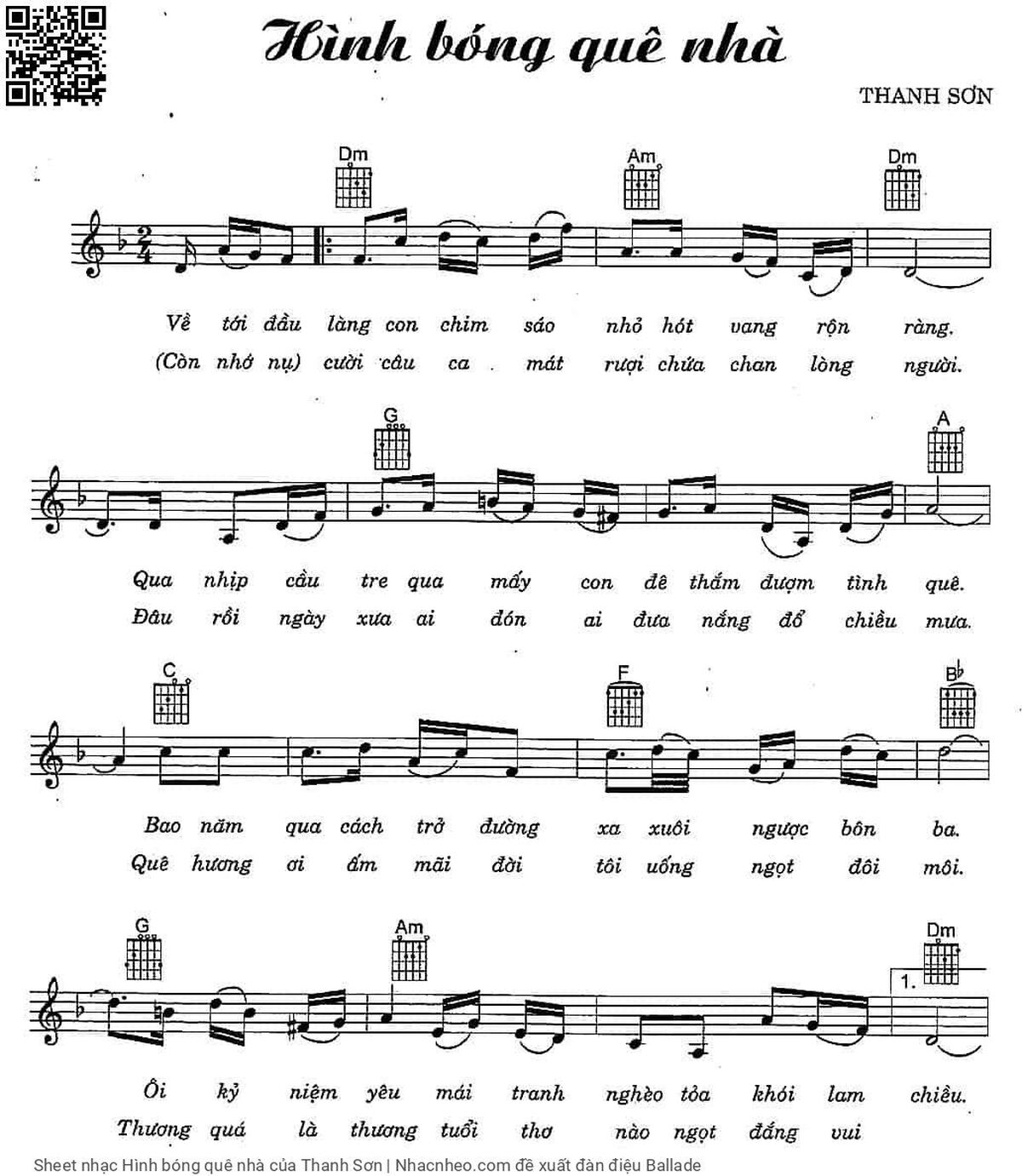 Thanh Sơn Về tới đầu làng con chim sáo nhỏ hát vang rộn ràng [PDF] [Sheet] [Lyrics] [Mp4/Midi] [Story and comment]