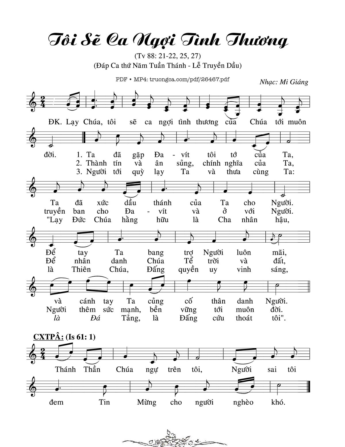 The first sentence: Lạy Chúa tôi sẽ ca ngợi tình thương của Chúa tới muôn đời