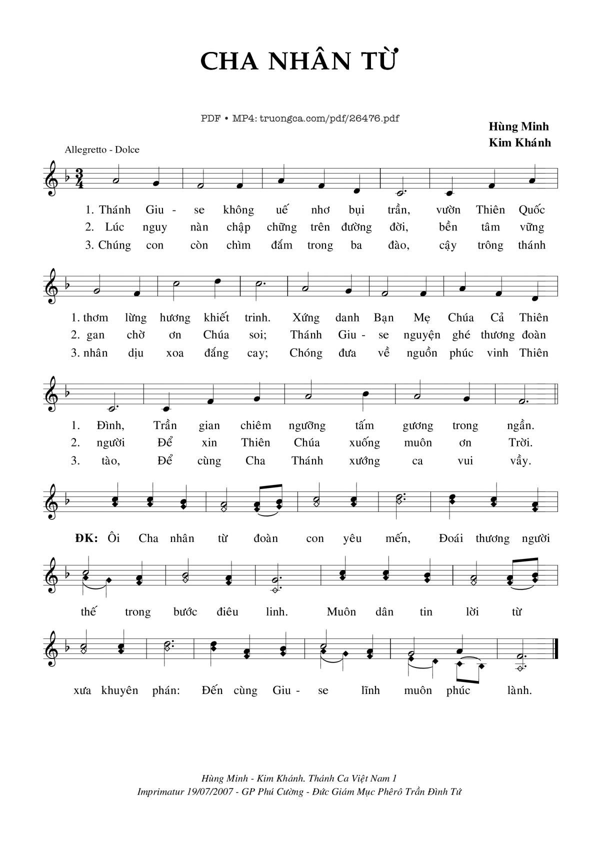 More similar sheets PDF Cha Nhân Từ: