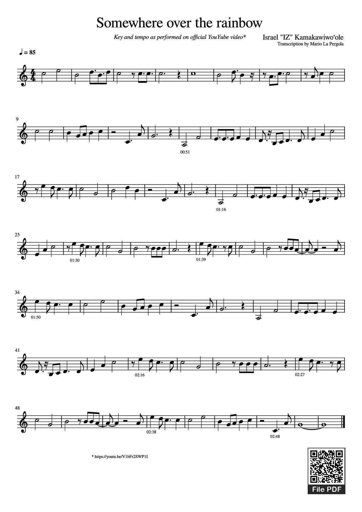 Download and print in PDF or MIDI free sheet music of Somewhere over the rainbow - Israel Kamakawiwo'ole for Somewhere Over The Rainbow by Israel Kamakawiwo'ole arranged by mlapergola for Flute