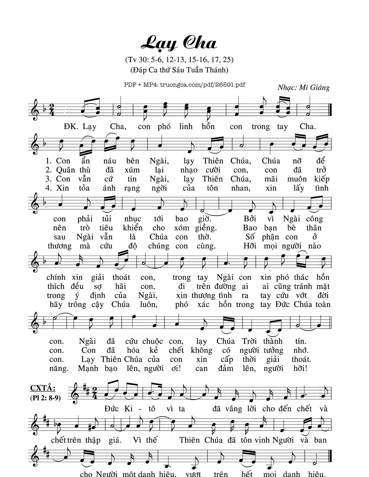 Mi Giáng Lạy Cha con phó linh hồn con trong tay Cha Con ẩn náu bên Ngài lạy Thiên Chúa [PDF] [Sheet] [Lyrics] [Mp4/Midi]