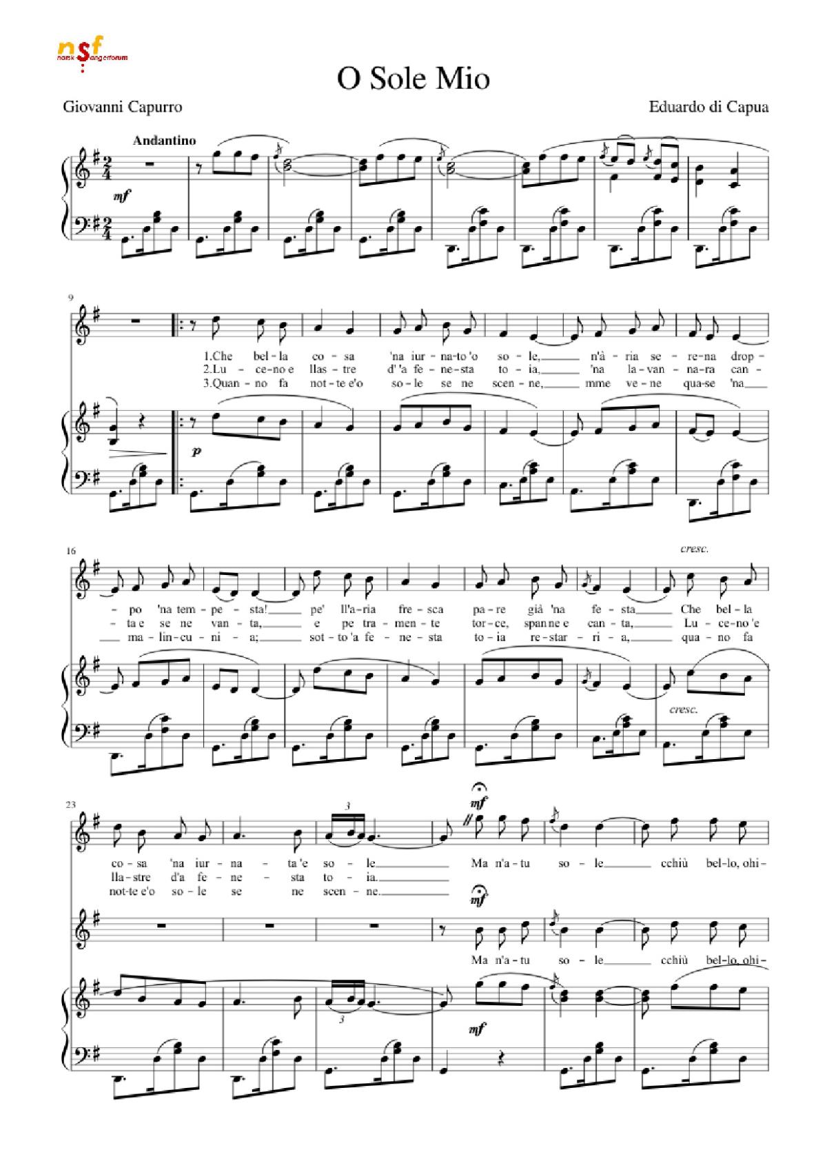More similar sheets PDF O Sole Mio: