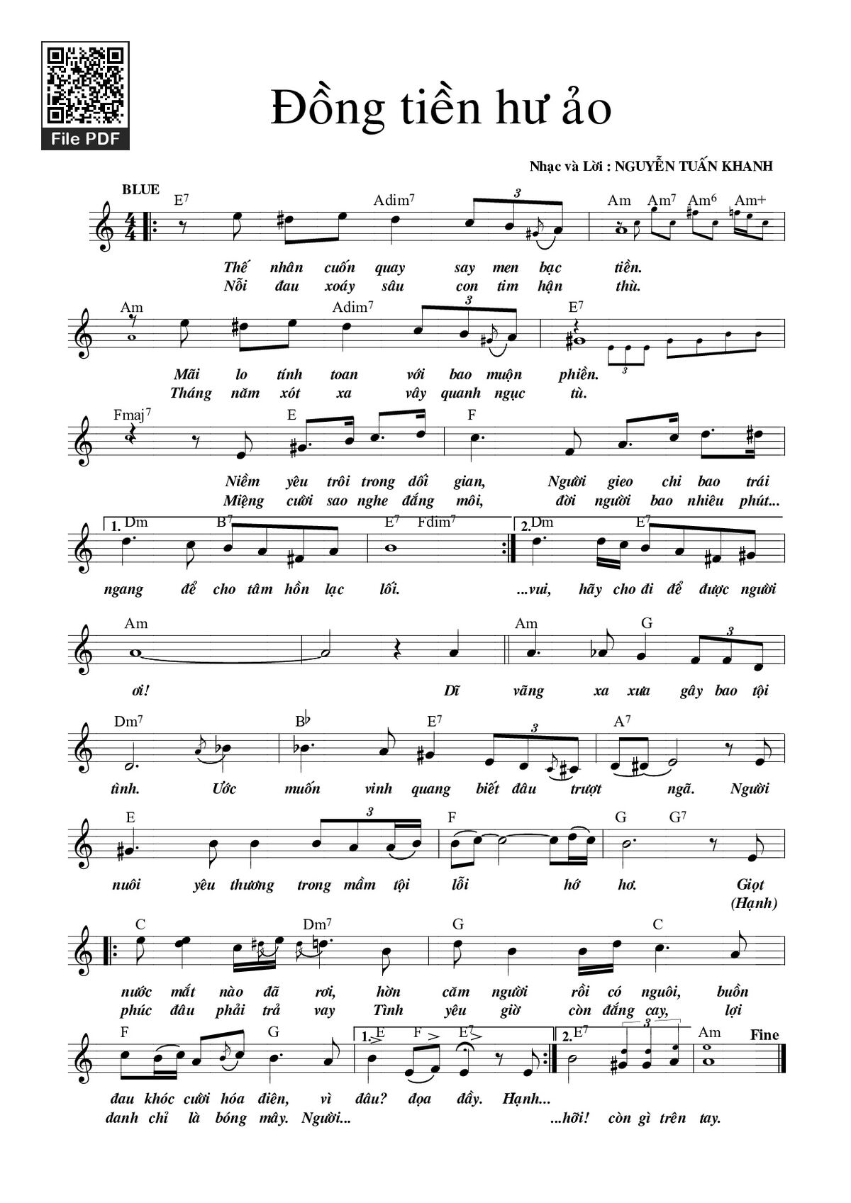 Nguyễn Tuấn Khanh Thế nhân cuốn quay say men bạc tiền Mãi lo tính toan với bao muộn phiền [PDF] [Sheet] [Lyrics] [Mp4/Midi]