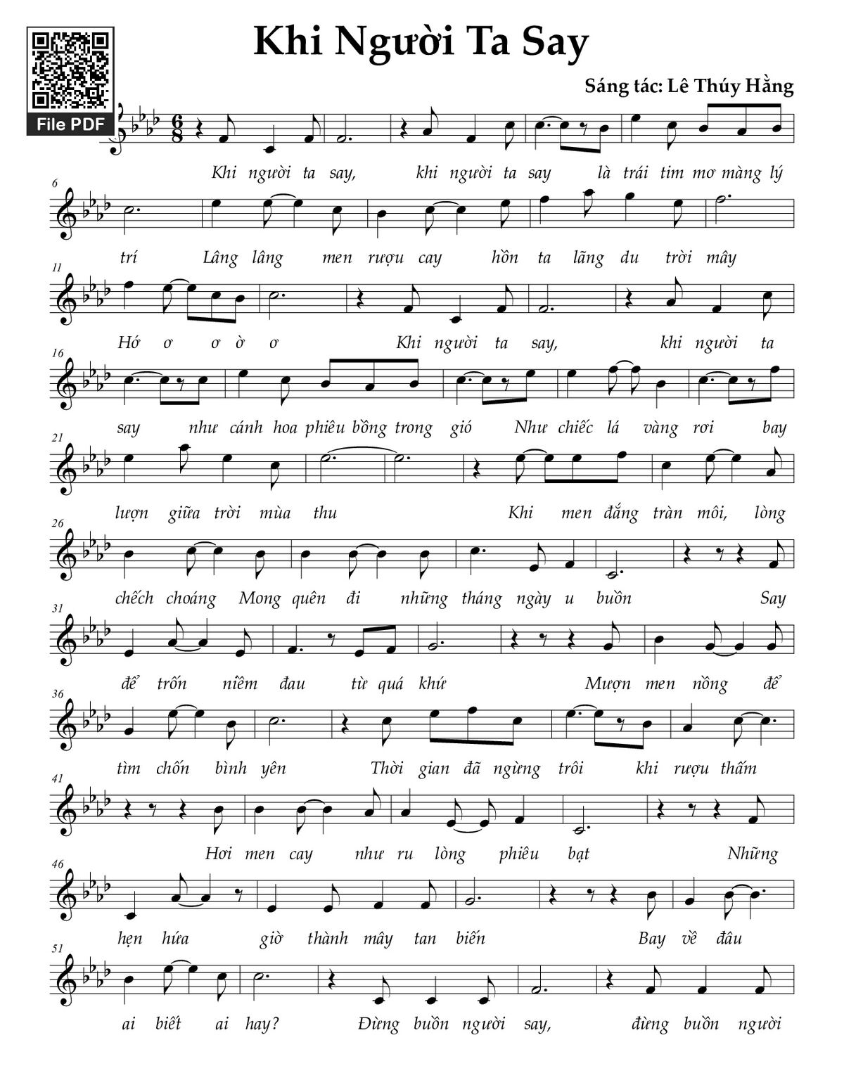 Lê Thúy Hằng Khi người ta say Khi người ta say là trái tim mơ màng lý trí [PDF] [Sheet] [Lyrics] [Mp4/Midi]