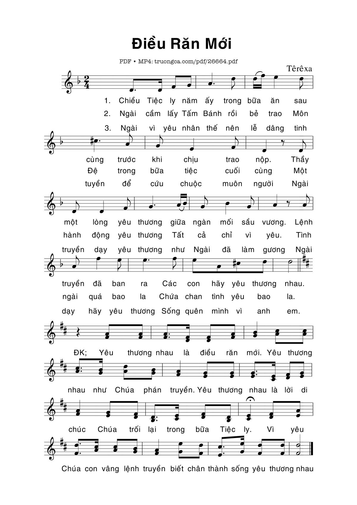 The Videos/audios Điều Răn Mới by Têrêxa were embed from Youtube, Musescore or the other 3rd links. Videos are subject to 3rd's copyright control and may be removed by YouTube's copyright rules and 3rd's policies or maybe included advertisements. If you cannot access to these songs, this mean that have been removed.