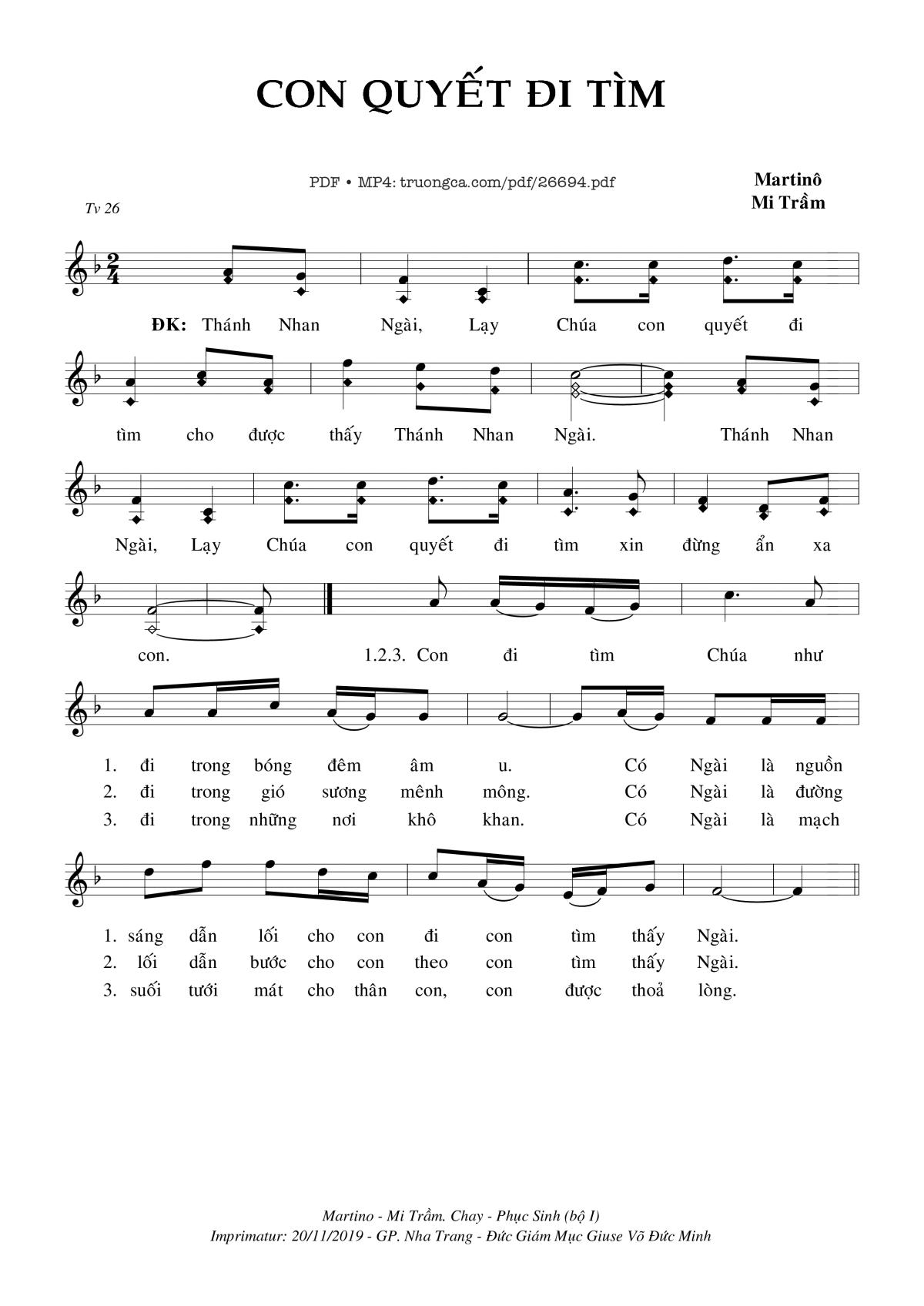 Martino &Amp; Mi Trầm Thánh Nhan Ngài lạy Chúa con quyết đi tìm cho được thấy Thánh Nhan Ngài [PDF] [Sheet] [Lyrics] [Mp4/Midi]