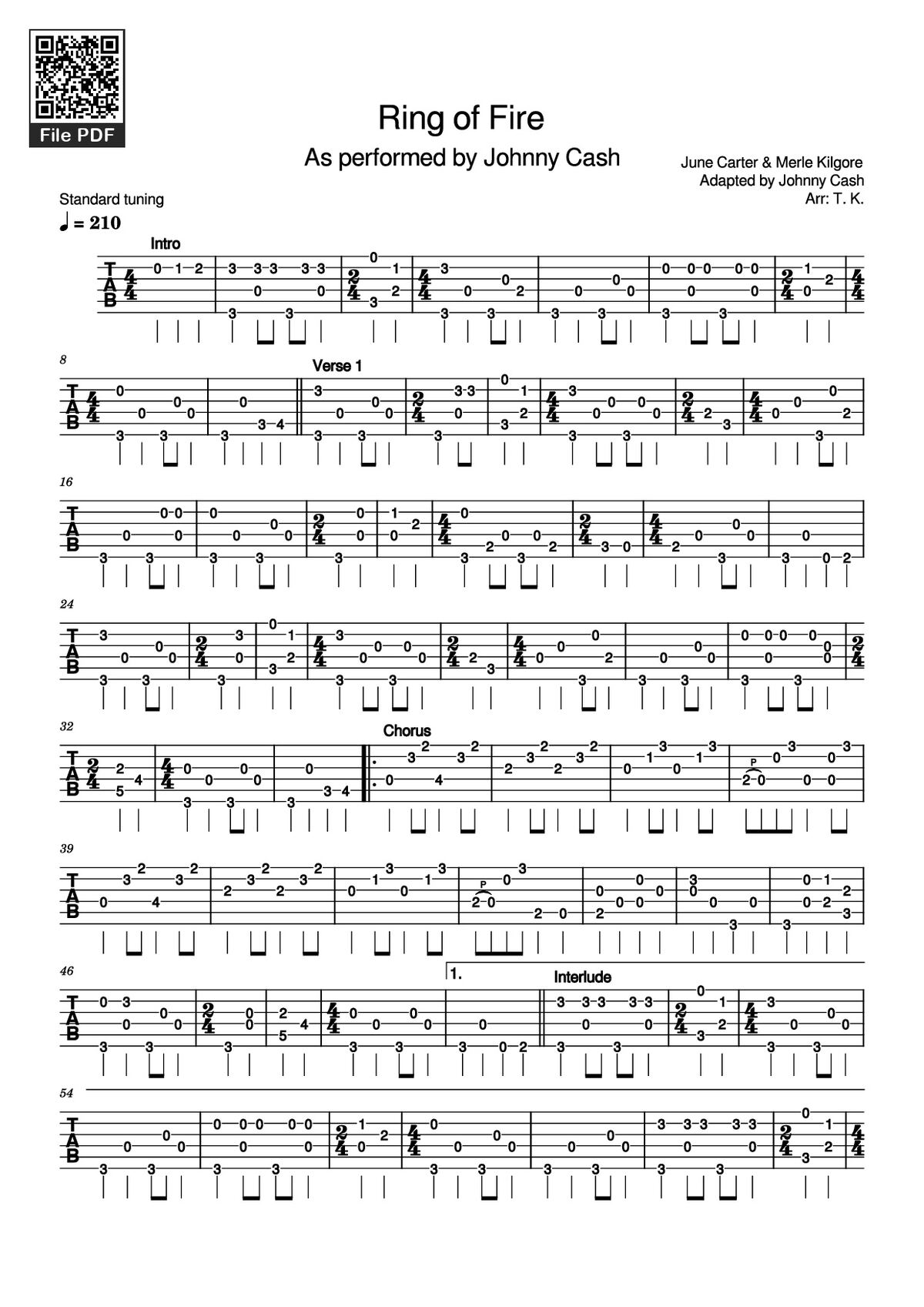 More similar sheets PDF Ring of Fire Guitar TAB: