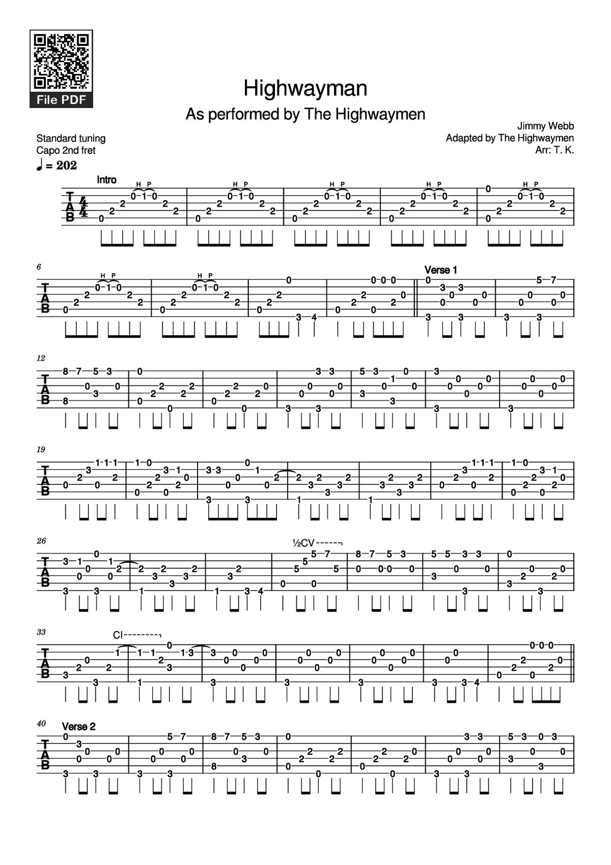 More similar sheets PDF Highwayman Guitar TAB: