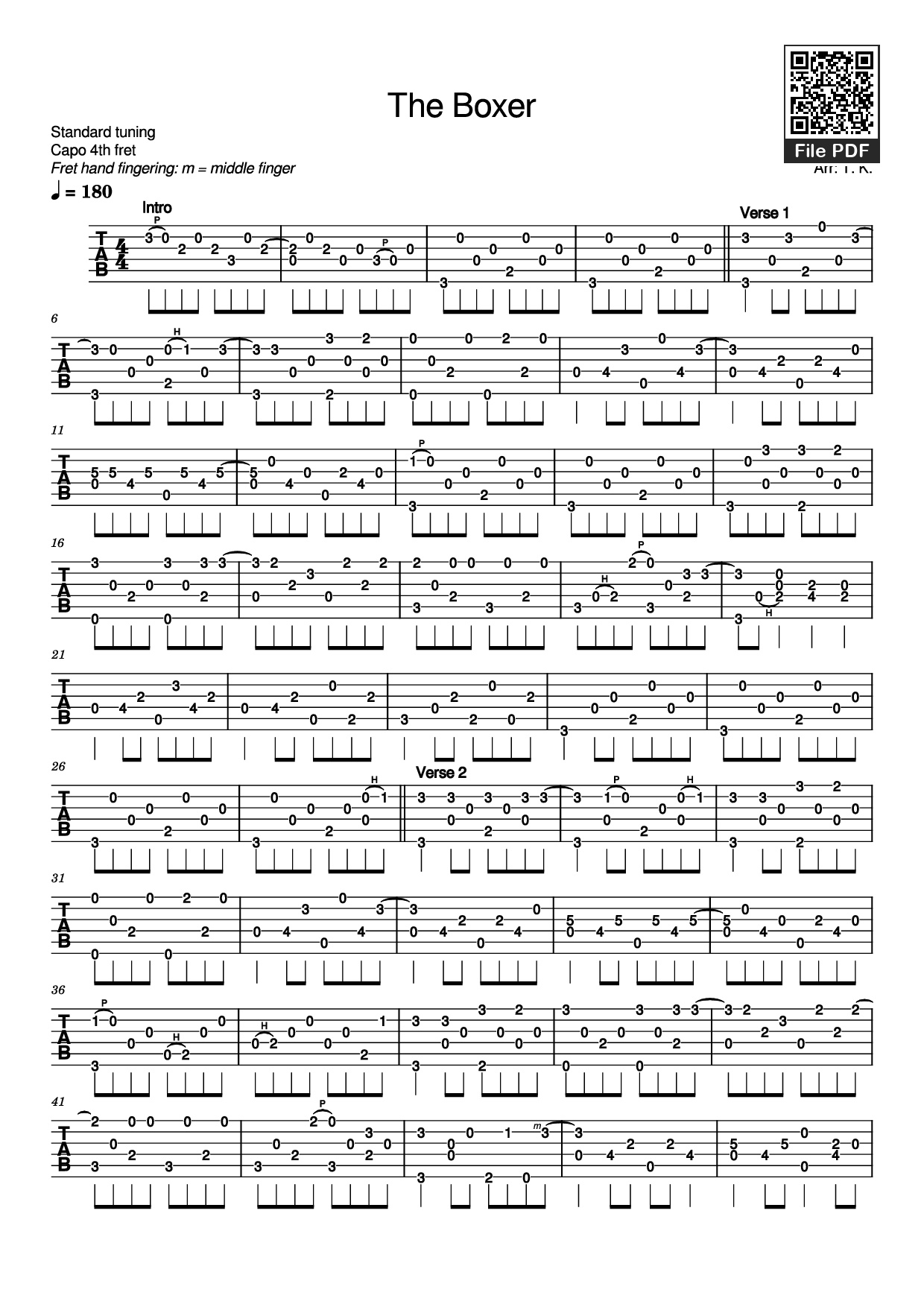 The Videos/audios The Boxer Guitar TAB by Paul Simon were embed from Youtube, Musescore or the other 3rd links. Videos are subject to 3rd's copyright control and may be removed by YouTube's copyright rules and 3rd's policies or maybe included advertisements. If you cannot access to these videos/audios, this mean that have been removed.